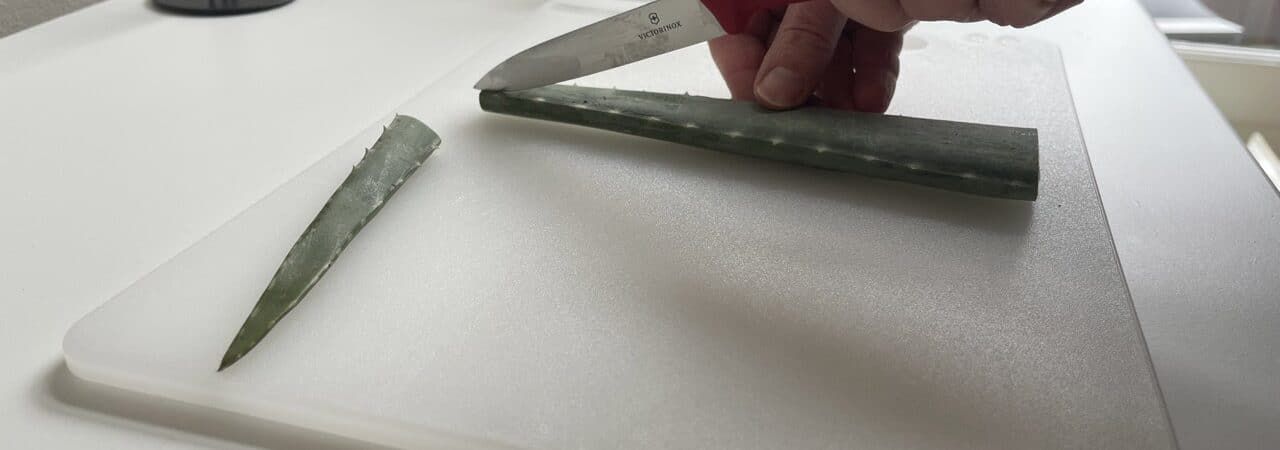 Je moet echter goed opletten dat je de bladeren van de Aloë Vera hiervoor in de lengte doormidden snijdt. Het transparante sap kun je met een lepel uit het blad halen. Als je niet goed in het midden van het blad snijdt, heb je kans dat er geel sap uit de plant komt. Dit is aloïnesap en kan de huid juist irriteren!