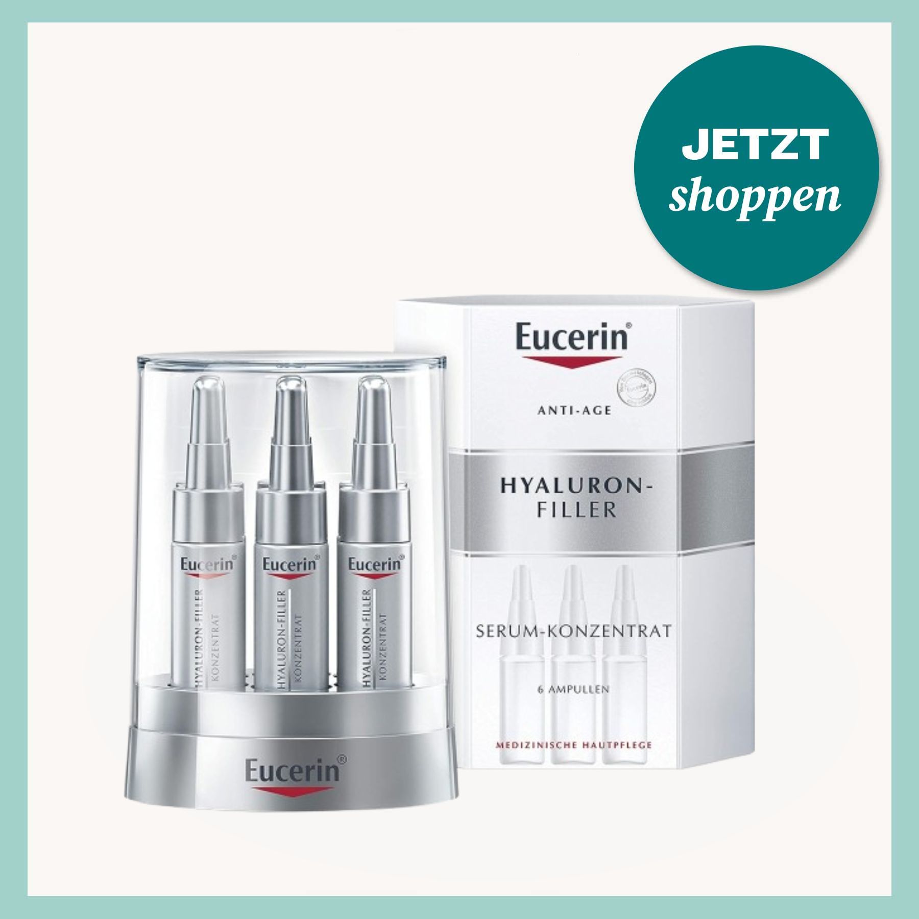 Wer zu empfindlicher Haut neigt, ist mit Eucerin-Produkten meist gut beraten. Das Hyaluronserum wird ebenfalls ein- bis zweimal am Tag aufgetragen und einmassiert.
