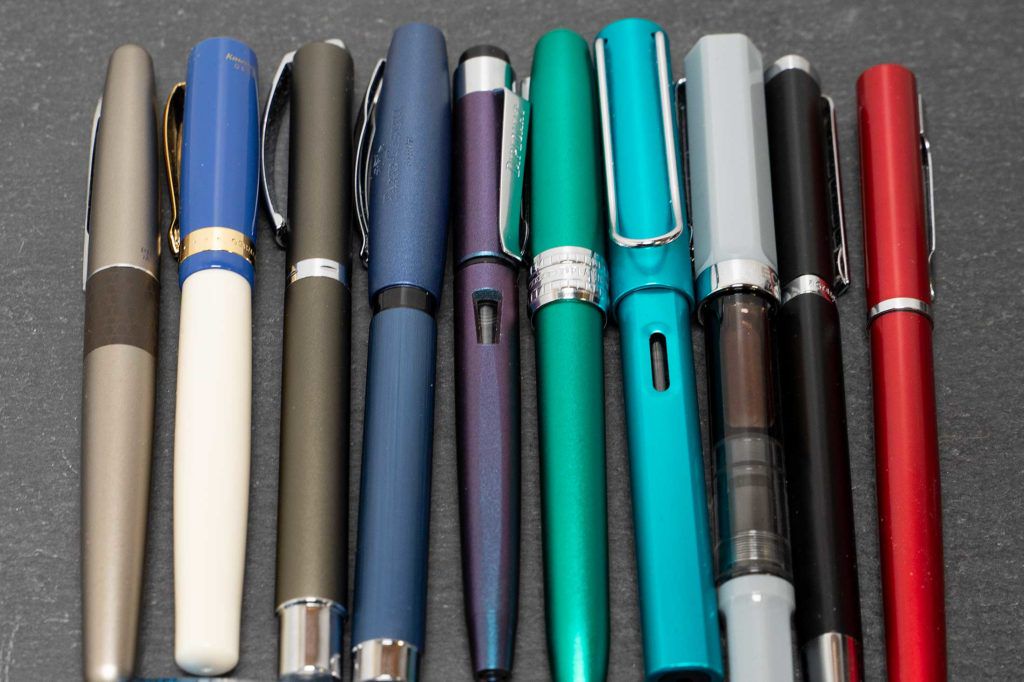 Außerdem kann man in einen Füller Tinten einfüllen. Entweder mit einer Tintenpatrone oder einem Konverter. Und die Auswahl an Tinten ist fast unüberschaubar. Alleine schon die verfügbaren Farben der Tinten. Es gibt nicht nur ein einfaches Blau, Schwarz und vielleicht noch ein Rot.