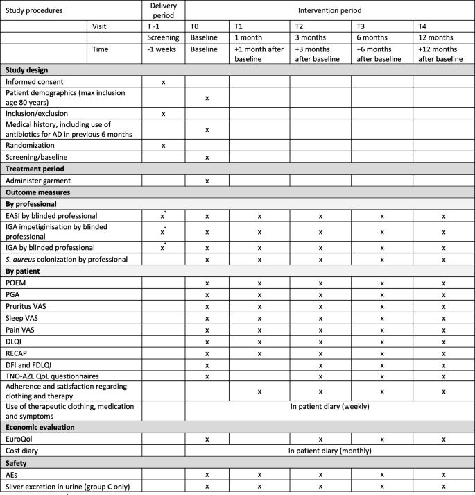 This study will also provide useful insights in the treatment of AD during a longer period. Data concerning the use of topical corticosteroids, adherence to the clothing, and use of other therapy will be available for analysis. In addition, the fact that both children and adults will participate from five centers across the Netherlands will provide us with data that can be used to compare age differences and treatment differences across a semi-national level. In addition, this trial will be the first trial to monitor the safety of textiles with silver in patients with the abnormal skin barrier.
