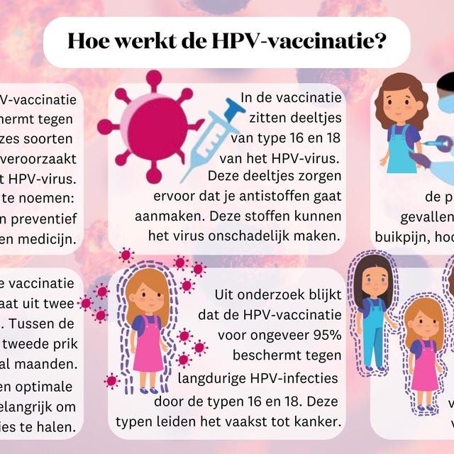 Sinds 2009 wordt in Nederland vaccinatie aangeboden tegen infectie met het human papillomavirus ( HPV humaan papillomavirus (humaan papillomavirus) ) ter preventie van (voorloper stadia van) baarmoederhalskanker. Jaarlijks krijgen ongeveer 700 vrouwen baarmoederhalskanker en sterven hieraan ongeveer 200 vrouwen. De afgelopen jaren is informatie beschikbaar gekomen dat HPV ook andere vormen van kanker kan veroorzaken zoals kanker van de vagina, vulva, penis, anus en mond/keel. Continue surveillance van gemelde bijwerkingen die optreden na vaccinatie wordt uitgevoerd aan de hand van een spontaan meldsysteem. Daarnaast is na de invoering van HPV-vaccinatie actief onderzoek gedaan naar klachten/symptomen die optraden in de week ná HPV-vaccinatie. Ook zijn deze vergeleken met het voorkomen van systemische klachten/symptomen in de periode vóór vaccinatie.