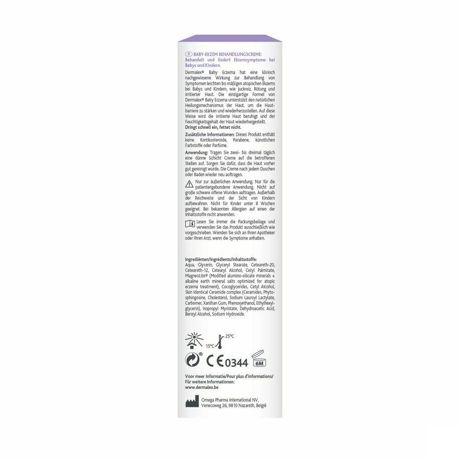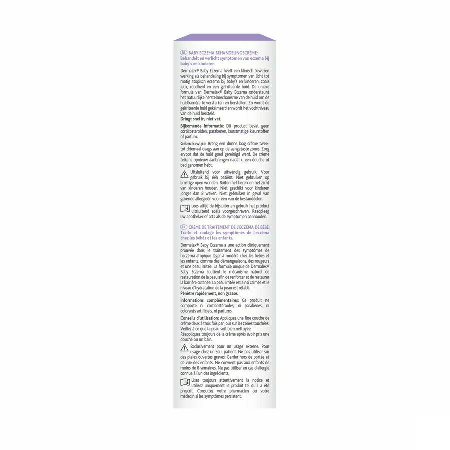 Dermalex Eczeem Crème gebruik je bij de behandeling van eczeem. Dermalex Eczeem is geschikt voor volwassenen en kinderen vanaf 6 jaar die last hebben van eczeem. Typische symptomen als jeuk, roodheid en huidirritatie verminderen bij het gebruik van de crème. Ook wordt het natuurlijke afweersysteem van de huid ondersteund. De crème bevat geen hormonen.