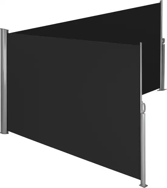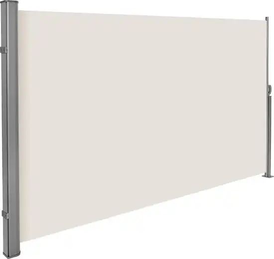 Het scherm zelf is gemaakt van zwaar polyester (280 g/m²) dat water- en vuilafstotend is. Zoals bij de meeste windschermen op onze lijst rolt dit scherm automatisch terug in de duurzame aluminium behuizing. Als de wind opsteekt, schuif je het eenvoudig open aan de handgreep en klik je het vast aan de andere zuil. Dankzij de lengte (4 meter) en de goede hoogte (180 centimeter) zit je achter dit scherm warm en windvrij. En door dat formaat ben je ook prima beschermd tegen vervelende inkijk.