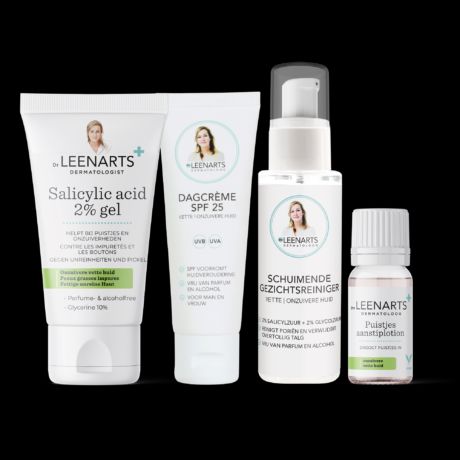 Je kunt de Salicylzuur 2% Gel combineren met de overige producten van de Vette en onzuivere huid-lijn: Aanstiplotion bij puistjes, Schuimende Gezichtsreiniger en Dagcrème SPF25 voor de vette en onzuivere huid.