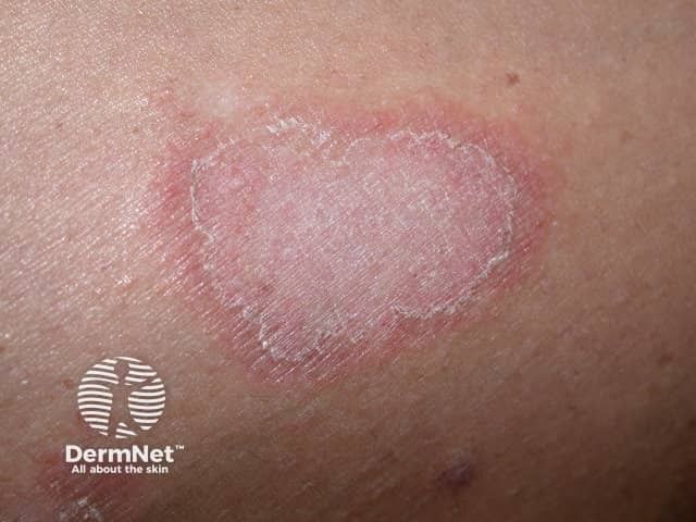 De uitslag begint gewoonlijk als een kleine roze bult. Deze breidt zich langzaam cirkelvormig uit tot een vlakke kring met bleek middenstuk, waarvan de grootte varieert. Er kunnen een paar ringen tegelijk zijn of slechts één enkele. Een dergelijke kring kan enkele weken tot maanden aanwezig zijn of af en toe verdwijnen en vervolgens weer terugkeren.