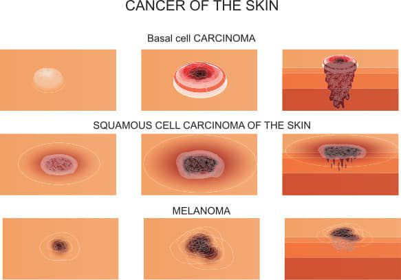 Er zijn 3 grote types huidkanker : het spinocellulair carcinoom, het basocellulair carcinoom, en het melanoom. De eerste twee types noemt men de non-melanoma huidkankers. Deze zijn relatief ongevaarlijk, maar moeten uiteraard ook behandeld en opgevolgd worden. Eén persoon op zes krijgt hier ooit mee te maken! Dit is frequenter dan borstkanker bij vrouwen!