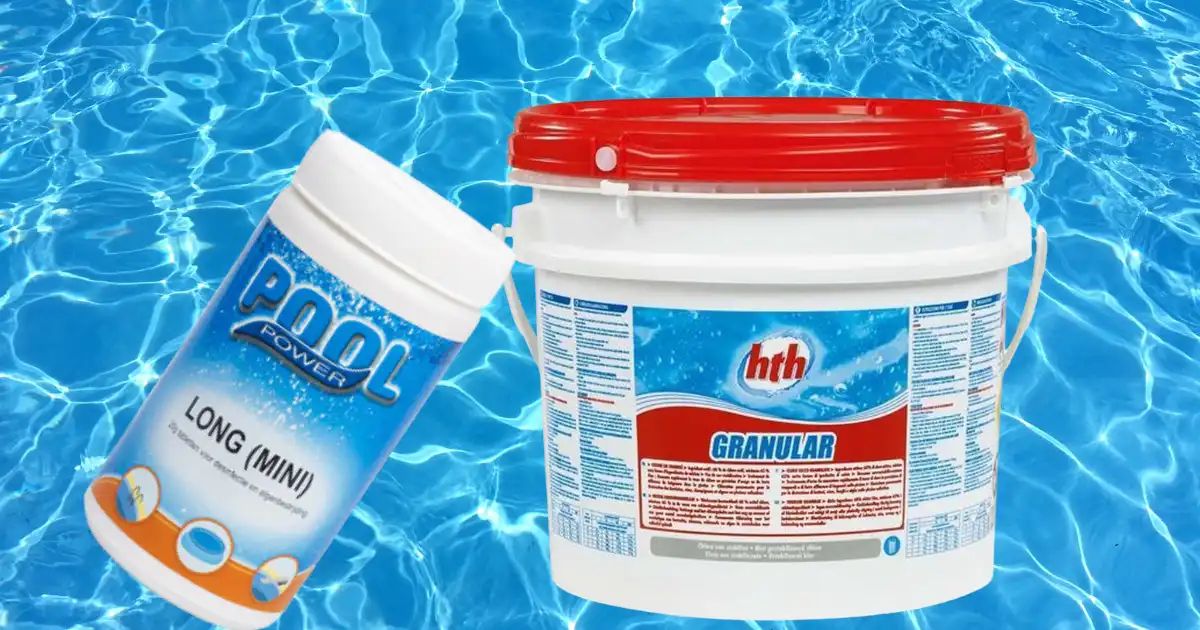 Zwembad chloor kan je verdelen in 2 soorten vloeibaar en vaste vorm. Het vaste chloor wordt in tablet vorm verkocht, meestal in potten of emmers van 1 kilo of 5 kilogram. Vloeibaar chloor wordt vaak in flessen van 1 liter verkocht.
