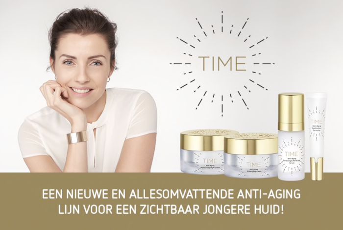 De TIME lijn omvat een verstevigende anti-aging dagcrème, een hydraterende anti-aging nachtcrème, een corrigerend anti-aging serum, en een corrigerende anti-aging oogcontourcrème. Deze 4 producten heb ik net als het panel van 20 vrijwilligers (wat op de verpakking staat vermeld), 28 dagen getest.