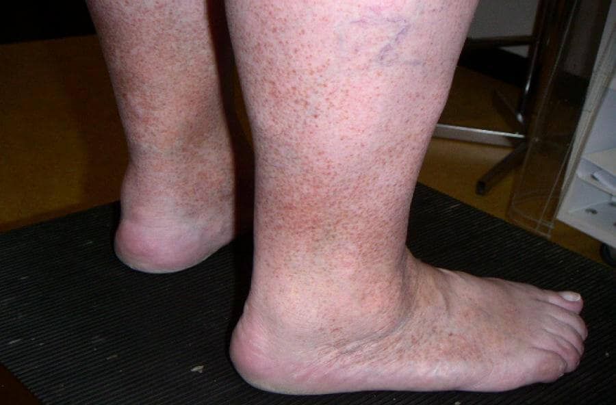 Erytrodermie betekent letterlijk “rode huid”. Dit is een bijzondere vorm van eczeem , waarbij de heftige ontstekingsreactie gepaard gaat met een massale verwijding van de bloedvaatjes in de huid. De GEHELE huid is rood, strak gepannen, warm, gezwollen, schilferend en erg jeukend. De patiënt voelt zich daarbij meestal ziek. Dit is een ernstige situatie, omdat door de bloedvatverwijding de patiënt veel vocht , eiwitten en mineralen dreigt te verliezen. Er bestaat een risico op uitdroging en acute nierfalen. Een patiënt met erytrodermie dient in een ziekenhuis te worden opgenomen en behandeld.