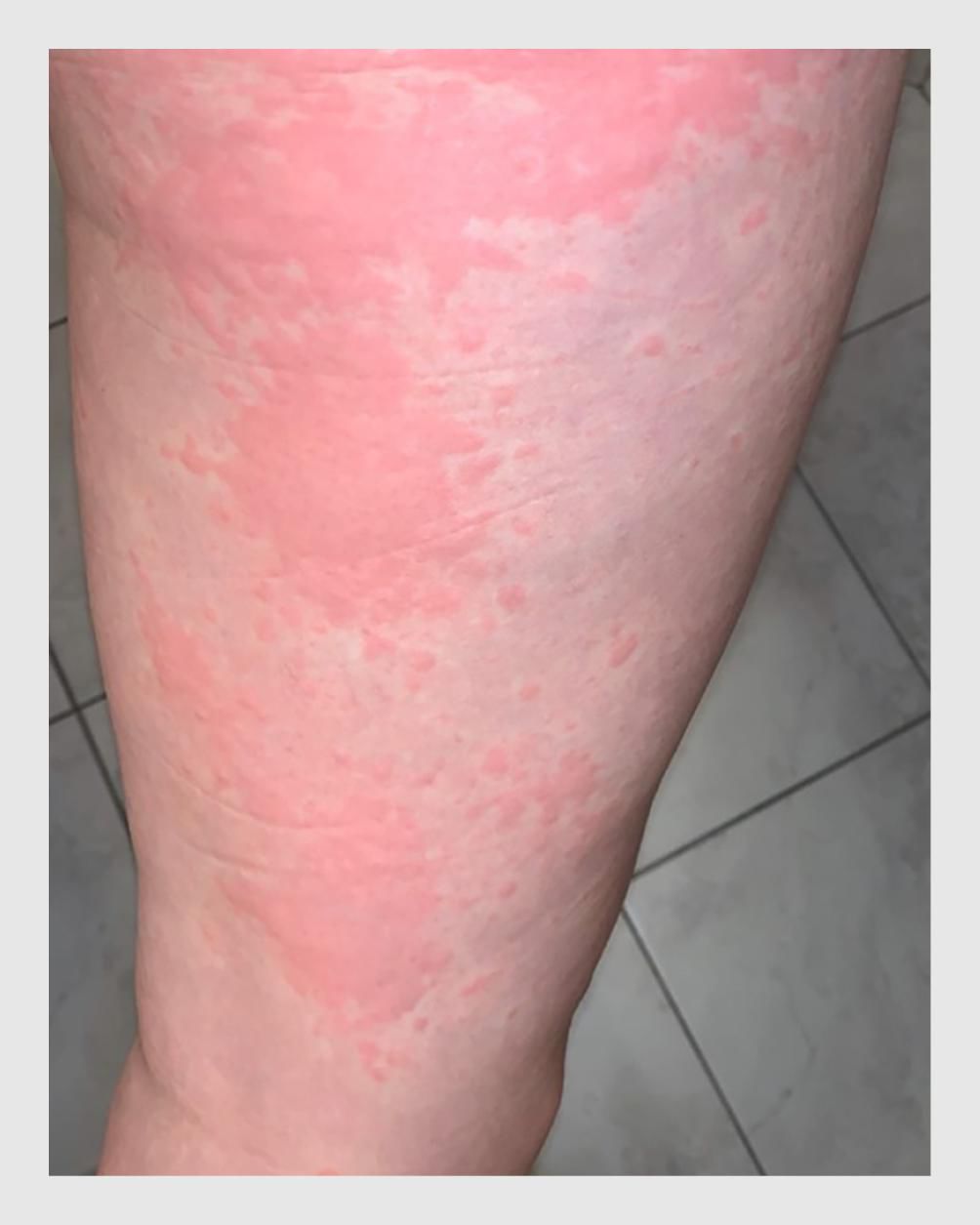 Sommige patiënten ontwikkelen een meer aspecifieke huiduitslag zoals roodheid, rode bultjes, eczeemuitslag of gewoon jeuk met krabeffecten
