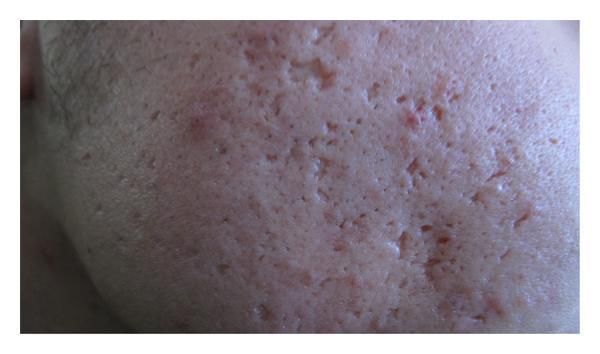 Deze vorm komt voornamelijk bij mannen voor en vaak lang na het 20e jaar blijft bestaan. De ontstekingen verlopen veel heviger dan bij gewone acne. De schouders, de rug en de borst zijn over het algemeen erger aangedaan dan het gezicht. Kenmerkend zijn de grote onderhuidse knobbels en abcessen (met pus gevulde holtes), die uiteindelijk genezen met achterlating van ontsierende (zelfs keloïd)littekens.