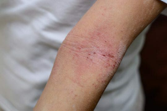 Zo goed als alle vormen van eczeem kenmerken zich door een rode huid en jeuk. De huid zal ook droger worden. Dit komt doordat de huid door het eczeem vocht verliest en minder vetten bevat. Dit is ook zo op plekken waar er geen uitslag is. Eczeem ontwikkelt zich dan weer extra goed op een droge huid. Zo blijft de aandoening vaak in stand gehouden. Eczeem kan enkel een droge huid en schilfers omvatten, we spreken van droog eczeem. Wanneer hier ook blaasjes met vocht bijkomen, noemen we dit nat eczeem. Er bestaan verschillende soorten eczeem. Hieronder lijsten we ze even op met de bijhorende kenmerken.