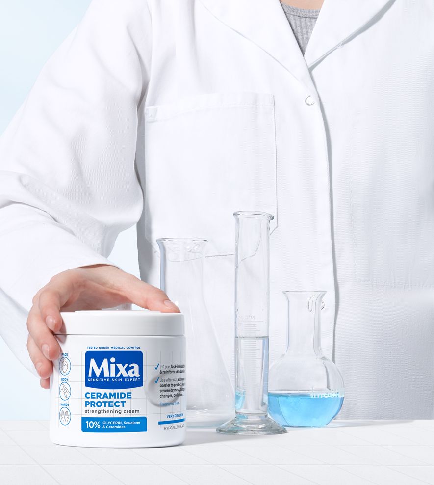 Schluss mit müder & trockener Haut! Unsere Geheimwaffe? Die Ceramide Protect Bodylotion von Mixa. Die Power-Formel aus 8% Gylcerin und Ceramide schützt und stärkt deine Hautbarriere, während sie intensiv mit Feuchtigkeit versorgt wird. Die Bodylotion überzeugt allerdings nicht nur in ihrer Wirksamkeit, sondern auch mit ihrer leichten Textur. Sie zieht sofort ein, ohne ein klebriges Gefühl zu hinterlassen. Auch du möchtest deine Haut wieder aufatmen lassen und ihr ein geschmediges Gefühl verleihen? Dann aufgepasst: