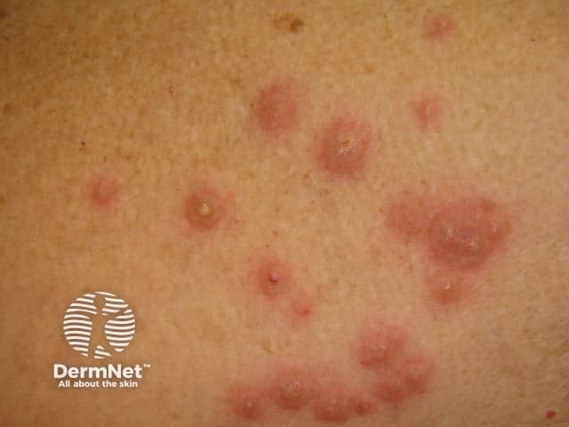 Alternativ kann auch eine geringe Menge an Kortikosteroid direkt in jede Läsion injiziert werden. Jedoch ist diese Methode nur bei Patienten wirksam, deren Anzahl an Läsionen eher gering ist. Manchmal werden auch andere Medikamente verschrieben, zumeist für Menschen, die eine Langzeitbehandlung mit Kortikosteroiden nicht gut vertragen. Einige der am häufigsten verschriebenen Medikamente als Alternative zu Kortikosteroide sind Dapson, Kaliumiodid und Colchicin.