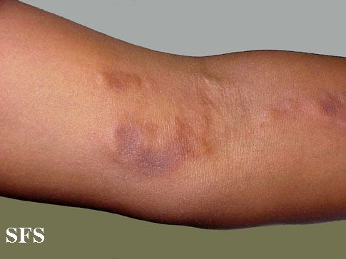 In patients with severe lesions, magnetic resonance imaging (MRI) imaging is useful to understand the depth of the lesions and look for findings like thickening of the fascia, tenosynovitis, or myositis, which can cause serious deformities. Ultrasound is also good alternative imaging to use in regular disease monitoring.[11][12]