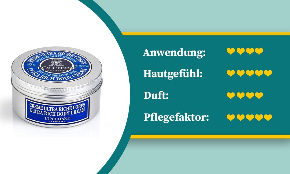 Dafür lässt sich die Creme aber sehr gut verteilen. Die Haut fühlt sich nach dem Eincremen sofort geschmeidig und auch glatter an. Allerdings solltet ihr nach dem Auftragen eine Weile warten, bevor ihr in eure Kleidung schlüpft.