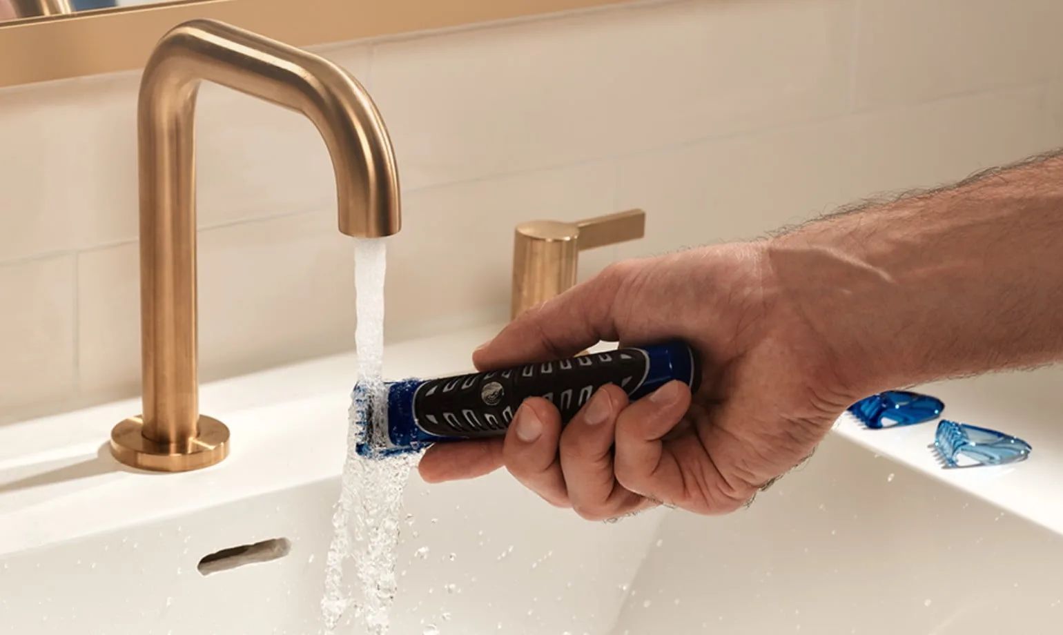 Begin met het wassen van je gezicht of in ieder geval je kaaklijn met een zachte reiniger. Kies altijd voor een milde face wash die je gezicht niet te veel uitdroogt. Reinig in ieder geval iedere avond je gezicht, in de ochtend alleen wanneer je een vette huid hebt.