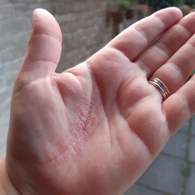 Eczeemplekken op de huid zijn droog, schilferend en ze jeuken enorm. Belangrijk is om op dat moment krabben te voorkomen. Het lijkt de jeuk even te verlichten, maar zorgt juist voor meer jeuk. Bovendien kan door veel krabben een ontsteking van de huid ontstaan, omdat bacteriën zich goed kunnen vestigen op een eczeemhuid. Ook in krabwondjes kunnen bacteriën gaan zitten. Je krijgt dan rode, oppervlakkige wondjes waar geel wondvocht uitkomt. Dit wondvocht droogt op tot gele korstjes. Als eczeem erger wordt, kunnen er ook blaasjes en blaren ontstaan.