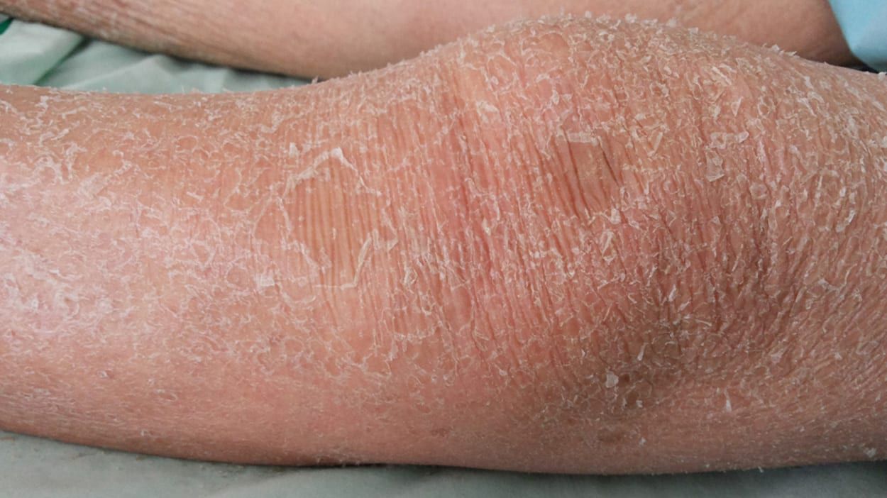 Deze vorm wordt ook wel constitutioneel eczeem genoemd en is herkenbaar aan de jeukende, rode, schilferige huid. Het komt vaak voor in de huidplooien.